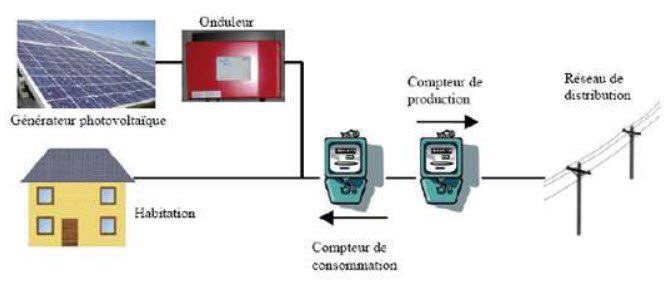 Une installation photovoltaïque résidentielle raccordée au réseau permet de produire de l’électricité pour l’envoyer sur le réseau électrique nationale. Ainsi la totalité de la production électrique est utilisée par les consommateurs proches. En Tunisie, la plupart des installations photovoltaïques sont reliés au réseau. L’installation d’un système photovoltaïque nécessite le respect de normes électriques et architecturales, et fait l’objet de nombreuses démarches administratives avant la mise en service.